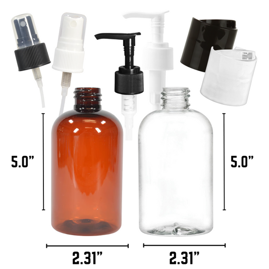 [Bottle] 8 oz Clear or Amber | PET Plastic Boston 24-410 | Optional Tops